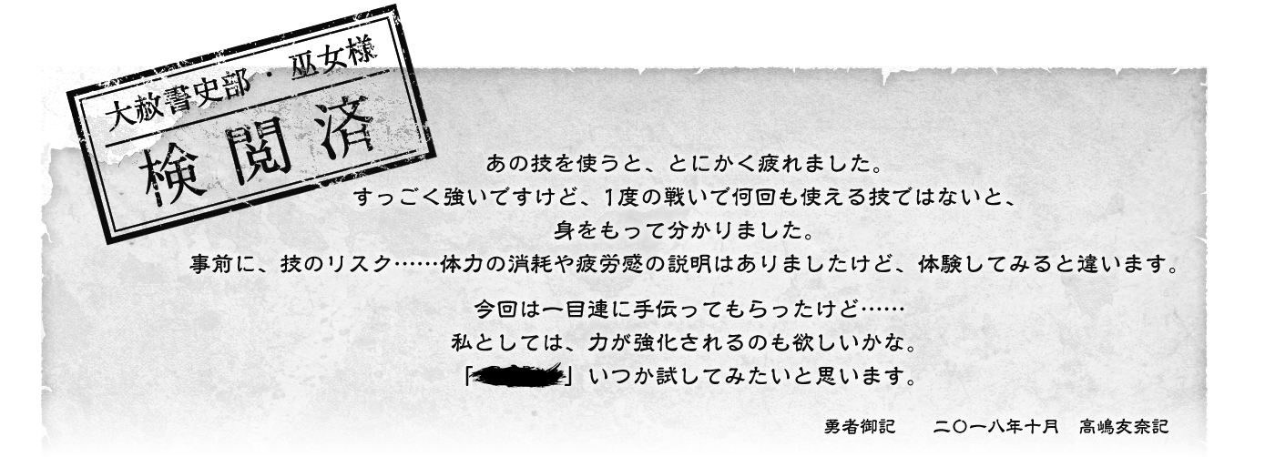 そしてしばらくの間、ある種の祭りのような『勇者お披露目』騒ぎが続き、その後彼女たちは順番に休暇を取ることが許可された。勇者システムが使用できるか否かは精神状態にも左右され、消耗しきった状態では力を発揮できない。適度な休養は欠かせないのだ。